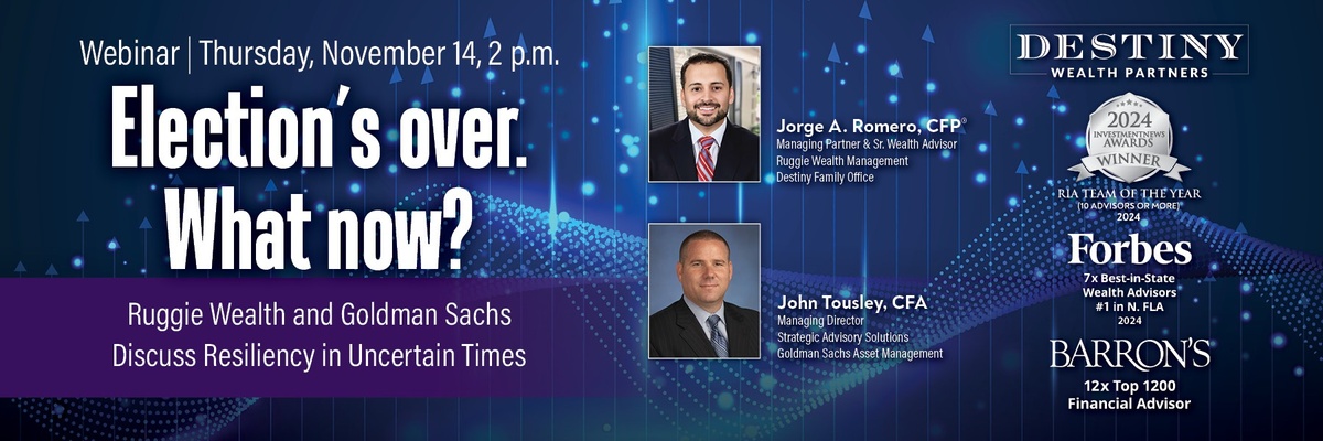 Ruggie Wealth Managing Partner Jorge A. Romero, CFP® will be joined by Goldman Sachs' Managing Director John Tousley, CFA® in a lively discussion.